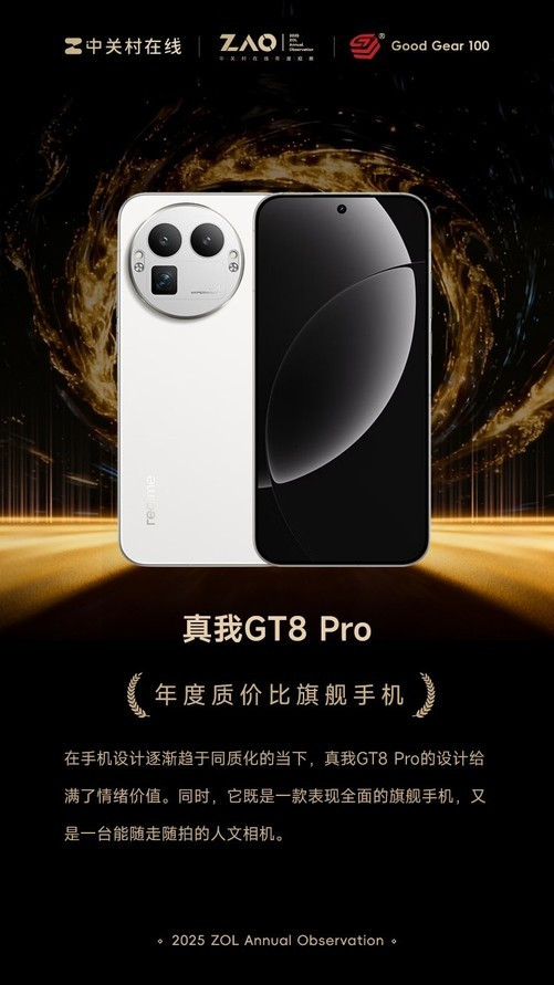 2025年度百大优秀科技产品:年度质价比旗舰手机真我GT8Pro