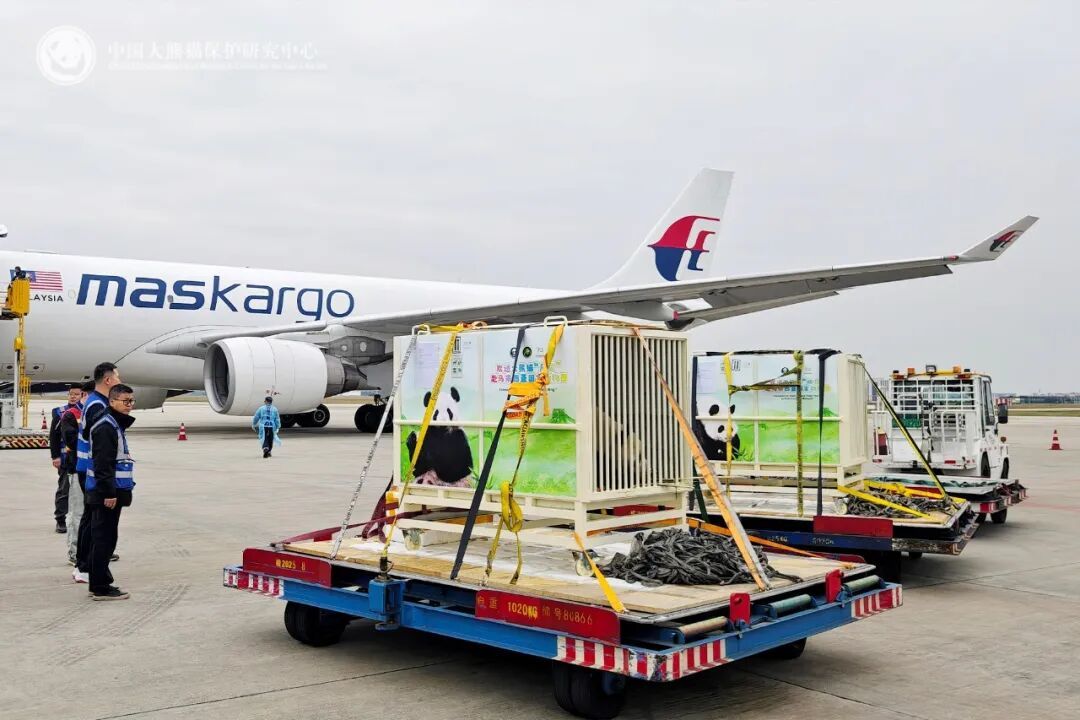 11月18日16时07分,中国大熊猫保护研究中心的一对大熊猫“辰星”“晓月”,搭乘专机从成都双流国际机场出发前往马来西亚,这是继今年5月大熊猫“福娃”“凤仪”回国后,又一对大熊猫前往马来西亚国家动物园旅居,翻开了中马新一轮大熊猫保护国际合作新的一页。