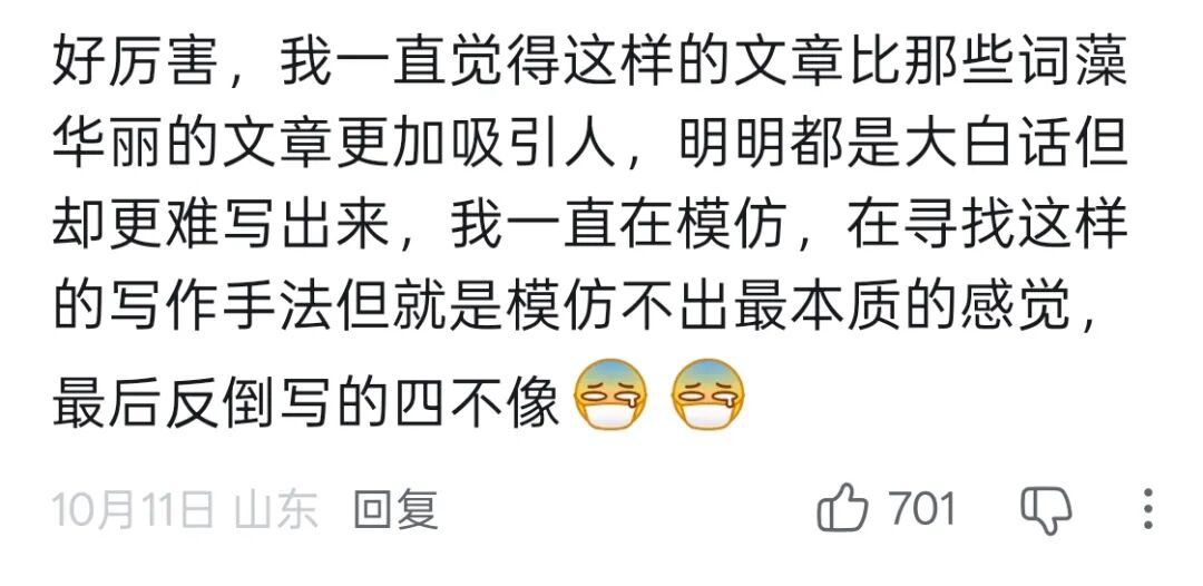 “up好会形容”“文学的最高级手法就是白描”“因为阅历是语文的一部分”……上万条评论里,是来自天南海北的共鸣。