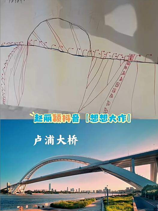 看着画纸上标志性的大桥和周边的房屋与路灯,不少粉丝第一时间就解出谜底:上海卢浦大桥。