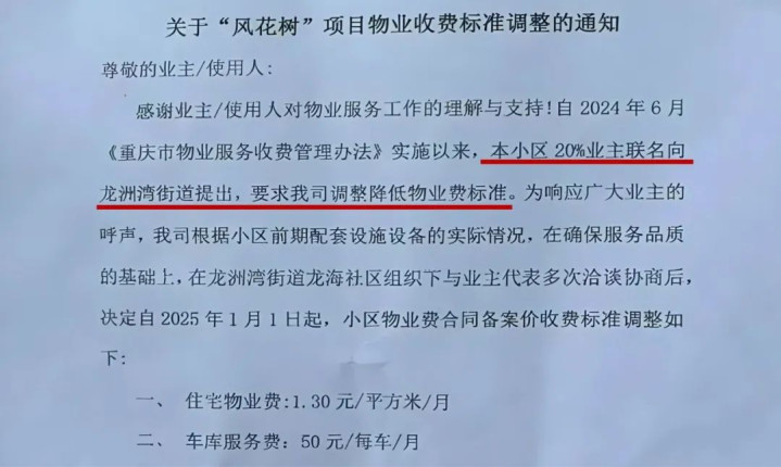 不满意积累久了,业主就会主动争取降低物业费,较为常见且温和的方式就是协商降价。重庆“风花树”小区住宅走的就是这条路,该小区的20%业主联名向街道提出降低物业费标准,在与物业进行协商后,物业同意接受降价要求。