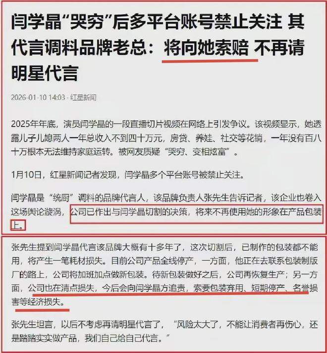 随后,部分合作品牌宣布解约,她本人也在2026年1月11日发布道歉声明,但群众的信任,早就被这番脱离现实的言论撕碎了。