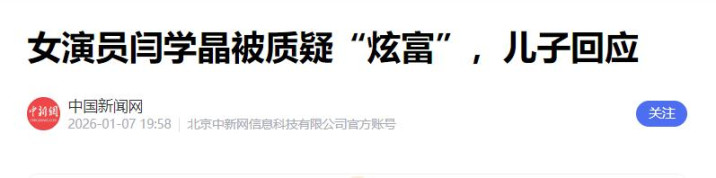 中国新闻网——《女演员闫学晶被质疑“炫富”,儿子回应》