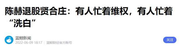 蓝鲸新闻————《陈赫退股贤合庄:有人忙着维权,有人忙着“洗白”》